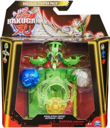Set de start cu 3 războinici Bakugan din seria 6. Pachetul conține 1 Bakugan Atac Special (rotativ), 1 Inel, 1 sfoară de tragere, 2 Core Bakugan, 3 cărți de caracter, 2 cărți Gate, 1 carte de atac special, 3 cărți Brawler, instrucțiuni și reguli. Potrivit de la 6 ani.