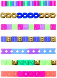 Lasă-ți imaginația să zboare! Acest set pentru confecționarea brățărilor include o gamă bogată de mărgele – lanțuri aurii, emoji, mărgele fațetate și dungate, elemente transparente și autocolante cu litere – pentru combinații de stil nesfârșite. Datorită sistemului ușor de fixare prin apăsare, copiii schimbă rapid designul și creează brățări ale prieteniei exact după dispoziție.