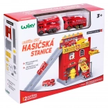 Jucărie completă pentru micii eroi – Stația de pompieri cu dimensiunile 37 × 17,5 × 21 cm oferă două mașini de pompieri, roți libere pentru rulare lină, lift manual și uși care se deschid. În pachet sunt incluse și autocolante și instrucțiuni ilustrate pentru asamblare ușoară.