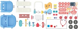 - Include diverse instrumente medicale care permit copiilor să imite intervenții medicale reale.