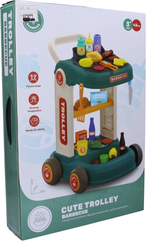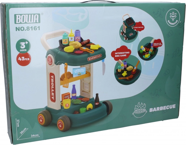 Cărucior de grătar compact, cu dotări bogate, pentru micii bucătari și pentru joaca la petrecerile în grădină. Pachetul include cărucior pe roți, alimente, vesele și accesorii pentru grătar. Ideal pentru jocul de gătit al copiilor, dezvoltarea imaginației și distracție împreună.