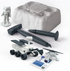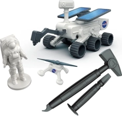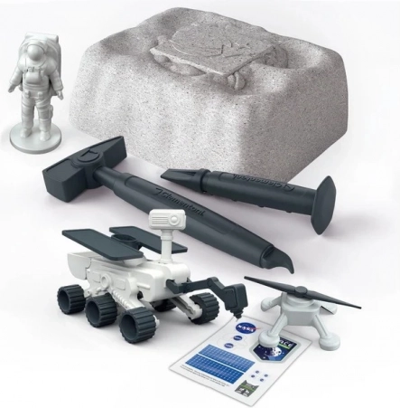 Acest set interactiv îmbină știința cu distracția: din „cărămida” de ipsos pentru săpături veți elibera treptat modele inspirate de misiuni reale NASA. După dezvăluire puteți asamblă roverul și drona și porni într-o expediție spațială proprie.