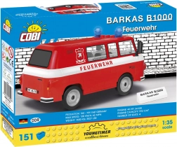 Barkas B1000 a fost o dubă și un microbuz iconic produse între 1961–1991 în fosta RDG. Varianta Feuerwehr a fost adaptată nevoilor brigăzilor de pompieri. Acest set COBI redă fidel caracterul vehiculului istoric la scara 1:35 și, datorită imprimărilor de calitate, arată excelent chiar și fără autocolante.