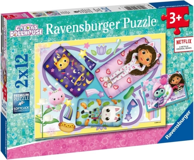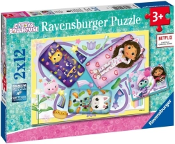 Puzzle 2x12 Casa lui Pisicuța Gabi de la Ravensburger oferă două puzzle-uri, fiecare cu 12 piese, ideal pentru micii fani ai desenelor animate. Dimensiunile fiecărei imagini sunt 26 x 18 cm.