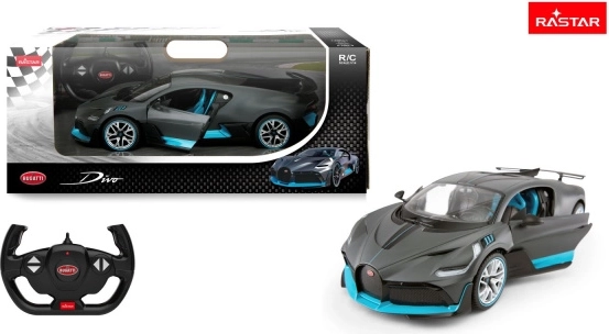 Acest model Bugatti Divo oficial licențiat de RASTAR este fabricat din plastic de calitate ABS și echipat cu componente mecanice și electronice de top. Reproduce fidel proporțiile și detaliile supersportului real și asigură rulare rapidă și precisă, cu manevrabilitate excelentă.