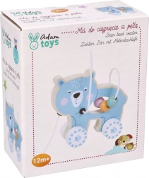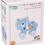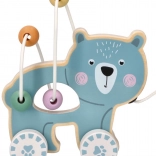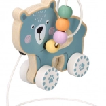 Jucăria de lemn pe roți cu ursuleț atrage atenția și încurajează copilul să se miște.