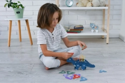 Puzzle-urile cu dinozauri colorate ajută copiii să își îmbunătățească abilitățile motrice fine și coordonarea.
