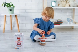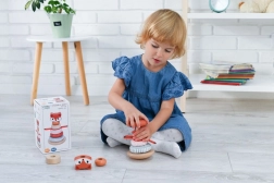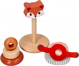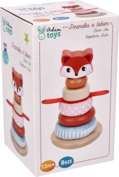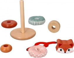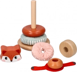 Turnul stivuibil cu tematică vulpe este jucăria ideală pentru copiii mici care doresc să își exploreze simțurile. Fiecare piesă a jucăriei oferă diverse texturi, de la lemn neted la materiale moi, și este destinat integrării senzoriale. Culorile vii și modelele ajută la creșterea percepției vizuale, iar stivuirea și manipularea elementelor întăresc abilitățile motorii fine și grosiere.