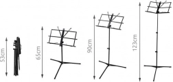 Acest suport de partituri vopsit, din metal, este echipat cu o bază cu trei picioare și înălțime reglabilă, ceea ce permite utilizarea sa în picioare sau așezat. Suportul poate fi chiar așezat pe o masă când este setat la înălțimea minimă. Suprafața înclinabilă se adaptează ușor nevoilor dvs., în timp ce unghiul de înclinare ajustabil previne închiderea partiturilor. Ideal pentru profesioniști și amatori.