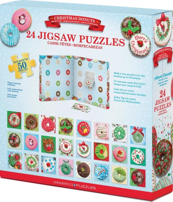 Scurtează așteptarea Ajunului Crăciunului cu originalul calendar de Advent EUROGRAPHICS, care ascunde 24 de puzzle-uri individuale cu motive de Crăciun. Fiecare puzzle are 50 de piese, format pătrat și dimensiunea de 12,5 × 12,5 cm. În fiecare căsuță găsești și modelul imaginii. Calendarul este, în plus, reutilizabil – anul viitor poți crea cu ușurință propriul calendar de Advent umplut cu mici surprize. Distracție grozavă pentru copii și adulți și o doză zilnică de atmosferă festivă.