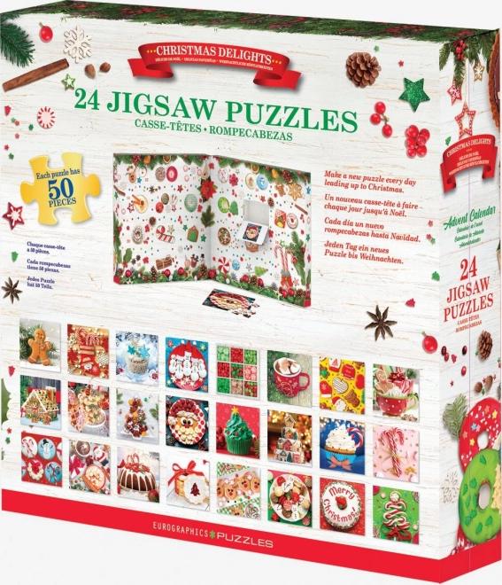 Scurtează așteptarea Crăciunului cu calendarul de Advent EUROGRAPHICS, care ascunde 24 de puzzle-uri pătrate cu motive de sărbători, fiecare din 50 de piese. Deschide în fiecare zi o căsuță și completează o nouă imagine – distracție rapidă pentru copii și adulți, calitate excelentă și calendar reutilizabil pentru anul viitor.