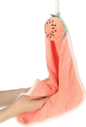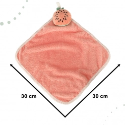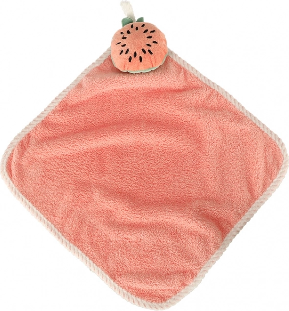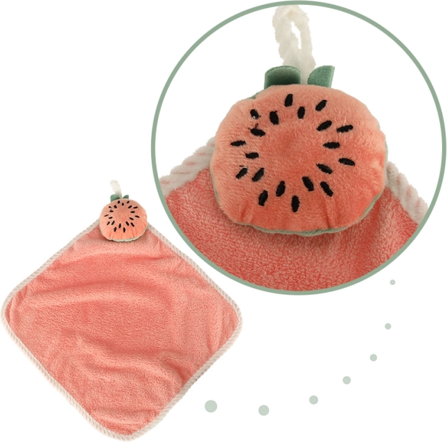 Un prosopel drăguț pentru copii, 30 × 30 cm, în culoare roz, cu motiv de pepene, face spălatul pe mâini mai plăcut. Este moale la atingere, se usucă repede și, datorită agățătorii pentru suspendare, este mereu la îndemână – ideal atât acasă, cât și la grădiniță.