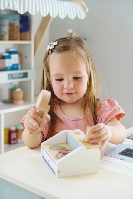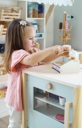 Designul minimalist și materialele naturale se potrivesc perfect jocului de-a magazinul sau cafeneaua.