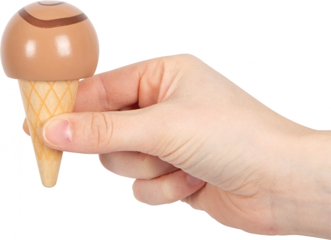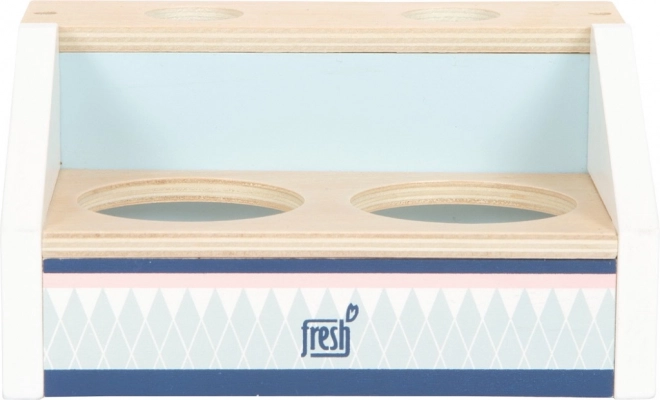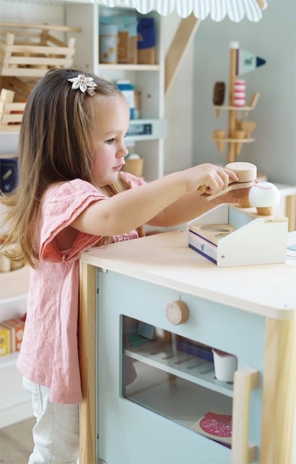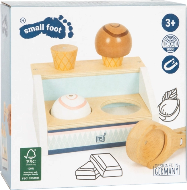 Tejgheaua din lemn pentru înghețată SMALL FOOT Fresh aduce în bucătăria copiilor distracție perfect „dulce”. Două compartimente, cornete și bile care, datorită magneților, se stivuiesc și se fixează ușor, astfel încât copiii pot servi înghețata ca într-o cofetărie adevărată. Lingura magnetică permite printr-o singură apăsare să „pui” bila pe cornet – simplu, distractiv și foarte spectaculos.