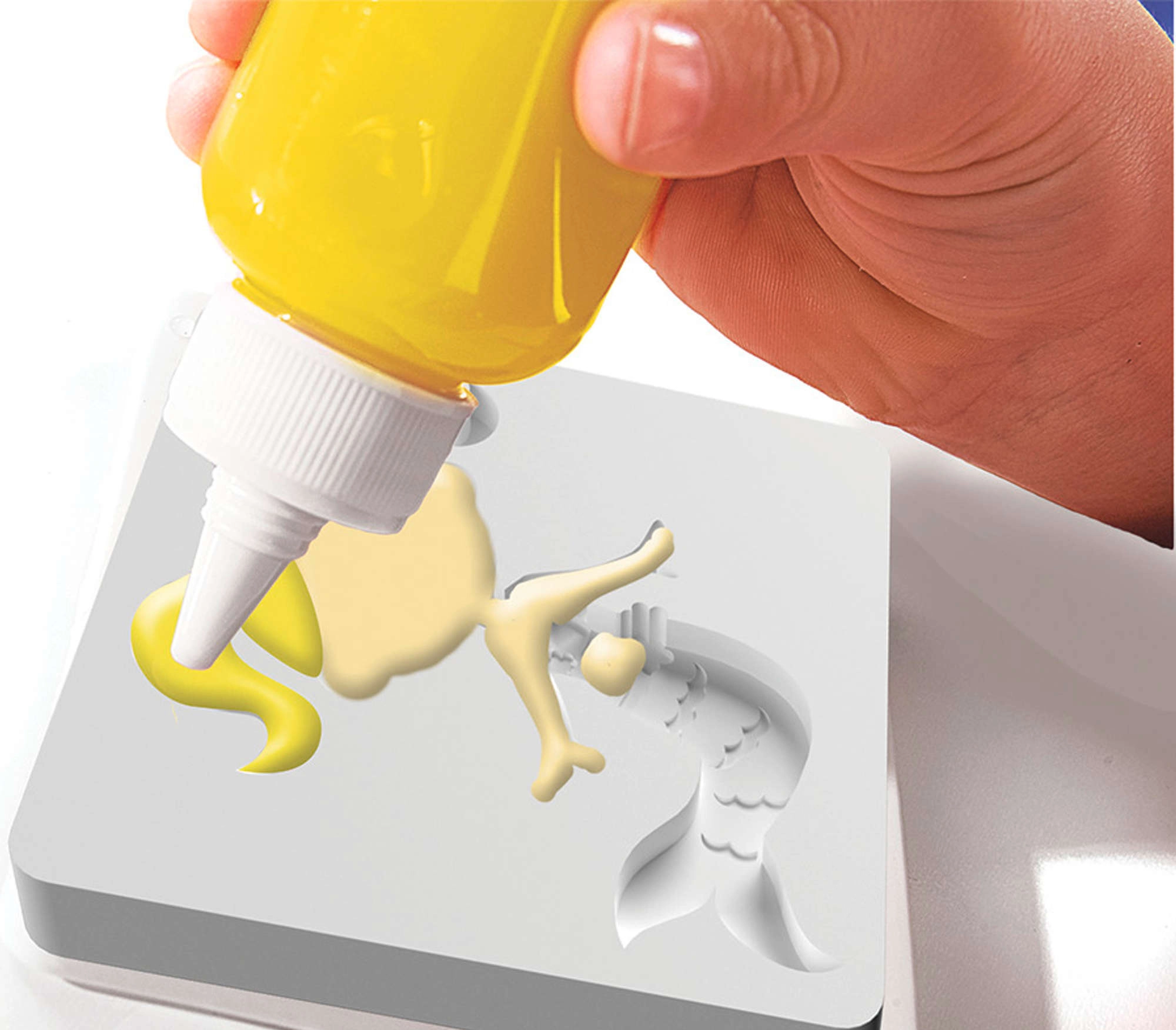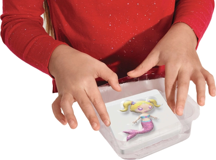 Umpleți mulajele cu geluri colorate, scufundați-le în soluția pregătită și urmăriți cum imaginea plată se transformă într-o decorațiune 3D moale. Ușor, rapid și distractiv.