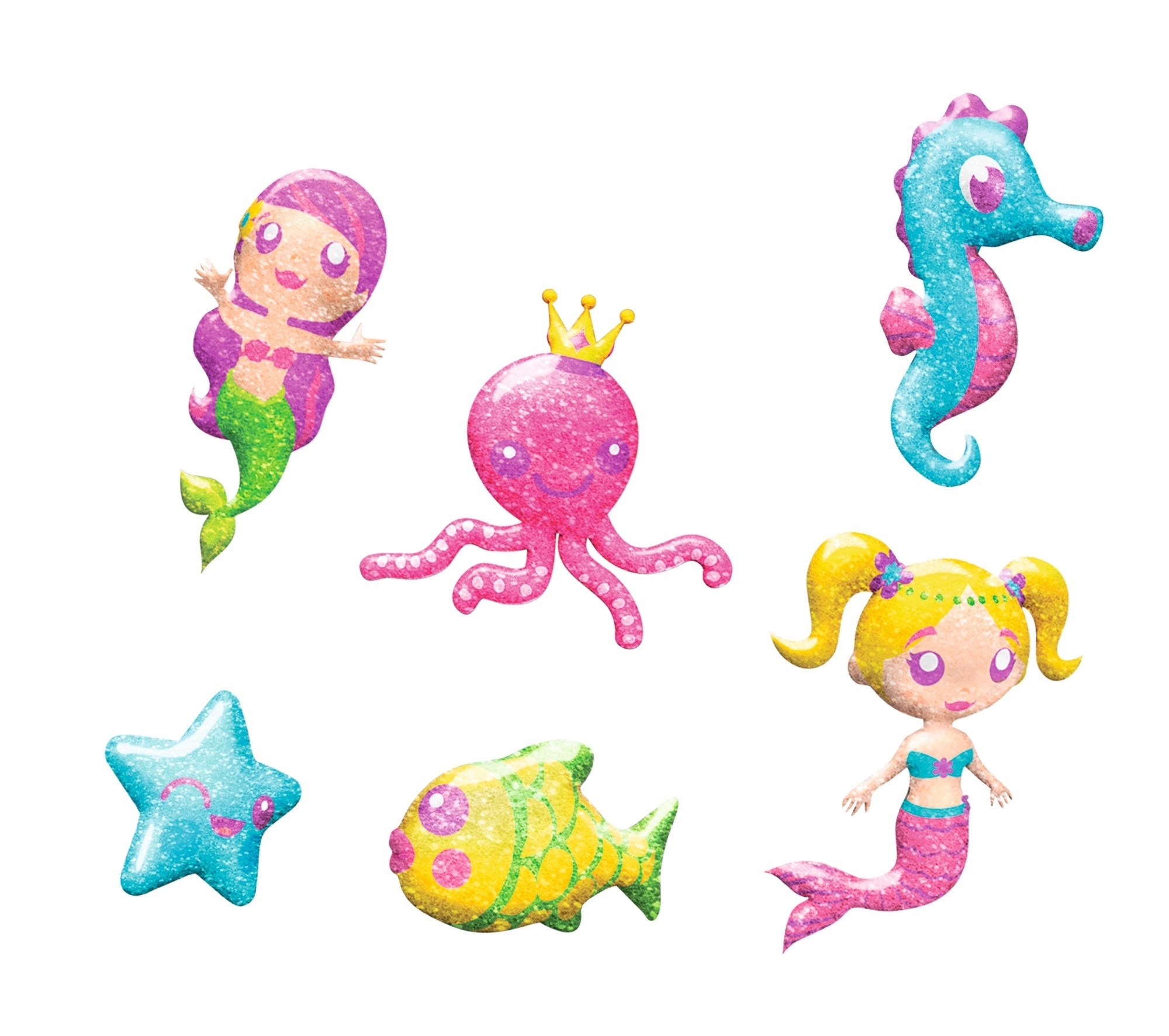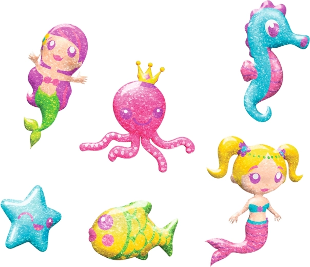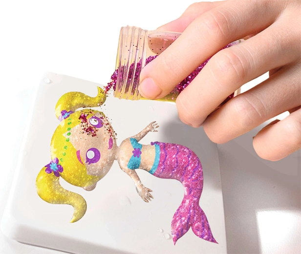 Flacoanele aplicatoare cu duză îngustă facilitează colorarea și detaliile fine. Sclipiciul oferă personajelor marine un luciu fermecător.