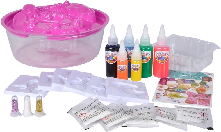 Setul Aqua Gelz Sirene Magice aduce copiilor distracție nesfârșită atât cu apa, cât și la masă. Cu ajutorul soluției speciale și al gelurilor colorate, vor crea în câteva clipe figurine 3D cu creaturi marine și sirene. Datorită procesului simplu și flacoanelor aplicatoare precise, creația este ușoară, curată și captivantă.