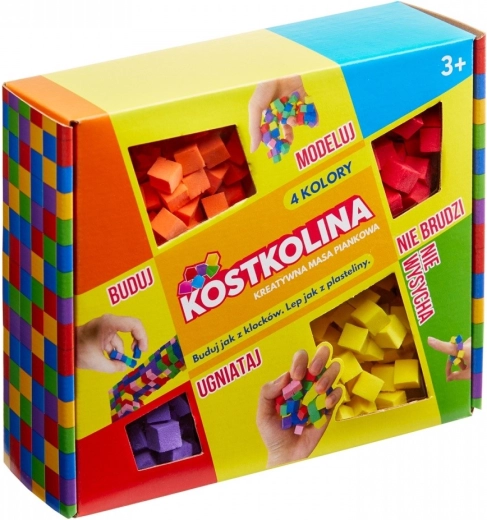 Kostkolina galbenă în set cu 4 culori este ideală pentru micii creatori. Îmbină cubulețele în forme originale, construiește structuri ca din cărămizi și creează-ți propria lume plină de culori. Materialul este ușor, aerat și plăcut în mână, astfel încât modelarea este simplă și distractivă.