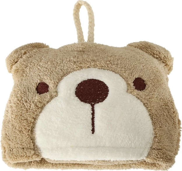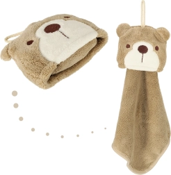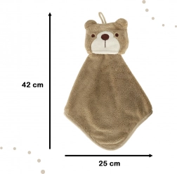 Moale și plăcut la atingere, prosopul este fabricat din polyester și nylon de calitate de culoare maro. Designul său este îmbogățit cu un buzunar cu urșișor, care nu doar decorează, ci și facilitează depozitarea prosopului, mai ales în timpul călătoriilor. Posibilitatea de spălare la mașină până la 30°C face întreținerea foarte ușoară.