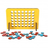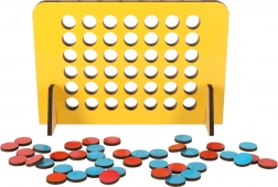 Jucați popularul joc Patru în linie, acum în versiunea de călătorie, și bucurați-vă de distracție oricând și oriunde. Scopul jocului este să conectați patru jetoane de aceeași culoare într-o linie orizontală, verticală sau diagonală. Tabla de lemn cu găuri permite inserarea facilă a jetoanelor.