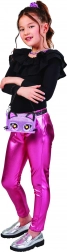 Țesătură mov sclipitoare, urechiușe în mov metalizat și negru, iar ochii pop-art atrag atenția de la prima vedere. Atașează cureaua de 13 inchi (aprox. 33 cm) și poart-o în jurul taliei, sau prelungește cureaua și bucură-te de ea ca mini geantă de umăr. Fermoarul practic păstrează în siguranță mărunțișurile. Dimensiuni compacte 9 × 15 × 3 cm, iar bateriile 3× LR44 sunt incluse – doar o desfaci și strălucești.
