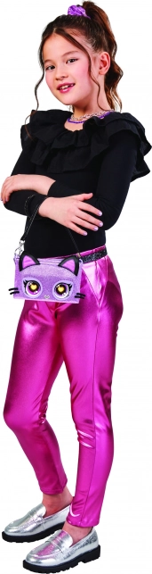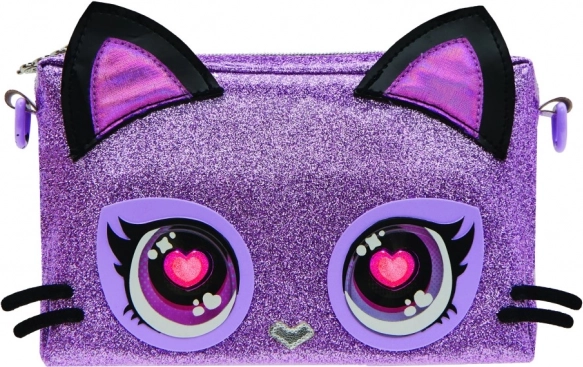 Exprimă-ți stilul cu adorabila pisicuță Purdy Purrfect. Apasă năsucul și schimbă culorile LED ale ochilor după moment. Ține apăsat pentru a intra în modul Lovestruck, când ochii luminează într-un roz romantic. Geanta doar luminează – nu clipește și nu scoate sunete, fiind potrivită și pentru spații liniștite.
