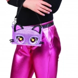 Material mov sclipitor, urechiușe de pisică și fermoar metalic. Curea de aproximativ 13 inchi (33 cm) pentru purtare în jurul taliei sau ca mini geantă pe umăr.