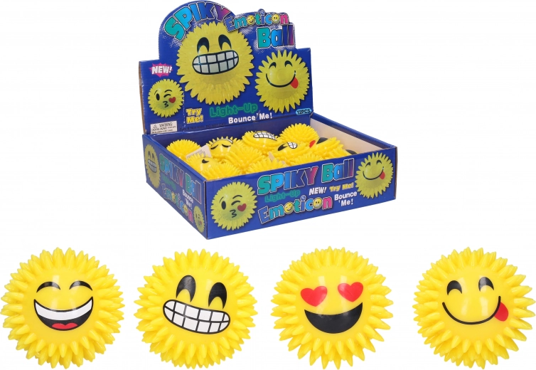 Mingiuță distractivă cu zâmbet, cu diametrul de 7 cm, care piuie la apăsare și, datorită LED-urilor integrate, oferă efecte luminoase. Țepi moi pentru prindere confortabilă și distracție în plus. Ideală pentru copii sau ca jucărie antistres amuzantă. Bateriile nu sunt înlocuibile.