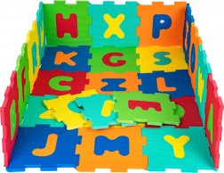 Acest set colorat de puzzle-uri din spumă cu literele A–Z oferă copiilor un loc moale, sigur și stimulant pentru joacă și primele activități de învățare. Din piese puteți forma cu ușurință un covoraș de joacă pentru podea sau forme 3D simple, de exemplu un cub sau un mic țarc. Spuma EVA este rezistentă la apă, ușor de întreținut și se curăță prin ștergere cu o lavetă umedă.