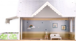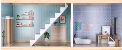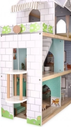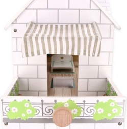 Această căsuță stilată pentru păpuși, realizată din lemn de calitate, oferă copiilor un decor realist cu living, bucătărie, dormitoare și balcon. Datorită structurii pe mai multe etaje și detaliilor bogate, susține imaginația, motricitatea fină și abilitățile sociale în jocul de grup.
