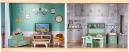 Fiecare etaj oferă un alt stil de camere – living, bucătărie, dormitor și balcon. Copiii pot rearanja ușor mobilierul și crea noi scenarii.