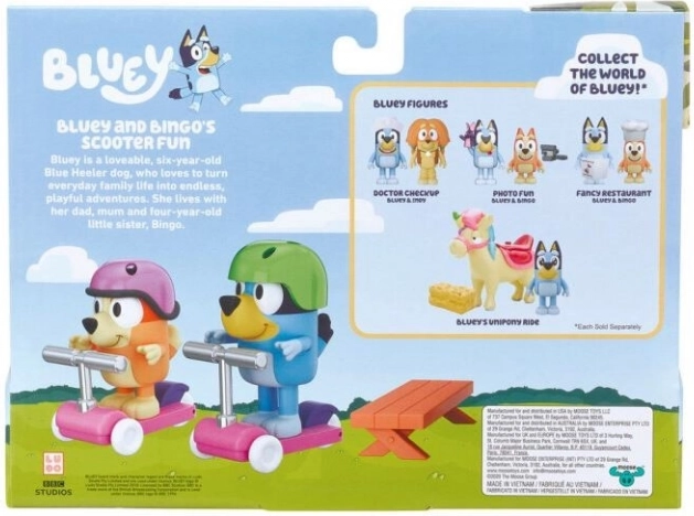 Experimentați distracția cu setul de joacă Bluey - Plimbare cu trotineta, care aduce la viață personajele Bluey și Bingo din serialul animat popular. Acest set oferă copiilor posibilitatea de a retrăi scenele lor preferate și de a-și dezvolta creativitatea. Include două figurine cu părți mobile, două trotinete și două căști de protecție.