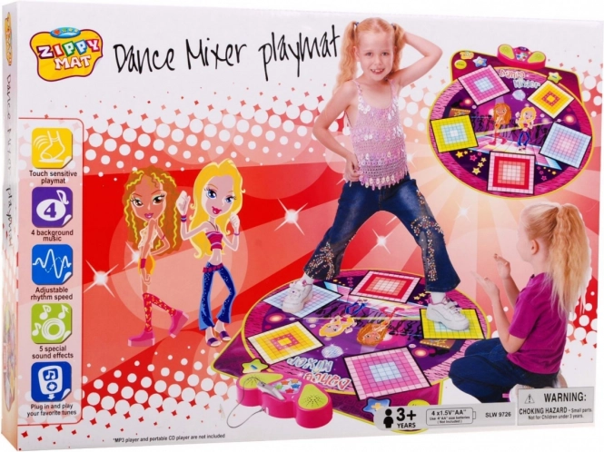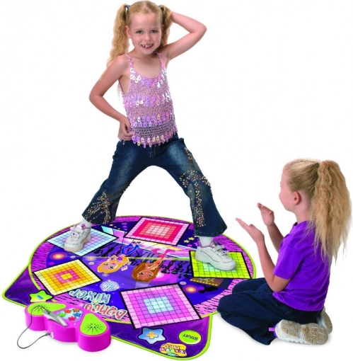 | Versiunea muzicală a Twister-ului, care combină perfect gimnastica cu distracția grozavă. Sarcina jucătorilor este să își plaseze picioarele pe pătratele de pe saltea, care sunt indicate de panoul de control. Jocul conține 4 fundaluri muzicale cu configurații diferite ale seturilor de dans. Toată atenția trebuie concentrată pe panoul muzical, care arată pătratul sau pătratele ce trebuie apăsate. Cu ajutorul butoanelor „+” și „-” se poate schimba nivelul de dificultate prin mărirea sau reducerea tempo-ului jocului. Panoul muzical include un afișaj, difuzor, comutator „on/off” și un buton pentru controlul volumului. Posibilitate de conectare a telefonului prin cablu. Jucăria este alimentată de 4 baterii AA (4 x 1,5 V - nu sunt incluse în pachet). | |