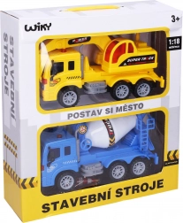 Mașini de construcție 23 cm cu excavator, malaxor și semne de circulație. Potrivite pentru toți micii constructori.