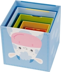 Joaca cu cuburile dezvoltă gândirea logică, răbdarea și orientarea în spațiu. Copiii învață să ordoneze cuburile după mărime, să recunoască forme și motive și se bucură de multă distracție în siguranță în timpul construirii.