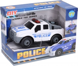 Pachetul include o șurubelniță în cruce cu cheie pentru piulițe integrată în mâner, astfel încât copiii au tot ce le trebuie pentru asamblare și dezasamblare. La alegere sunt două variante de culoare – alb și albastru, ideale pentru orice colecție de vehicule de poliție.