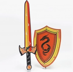 Acest set pentru copii include o sabie din spumă și un scut cu un motiv atrăgător de dragon. Construcția ușoară din spumă susține joaca sigură fără risc de rănire și este potrivită pentru copiii care adoră aventurile cavalerești, jocurile de samurai și distracția cu costume.