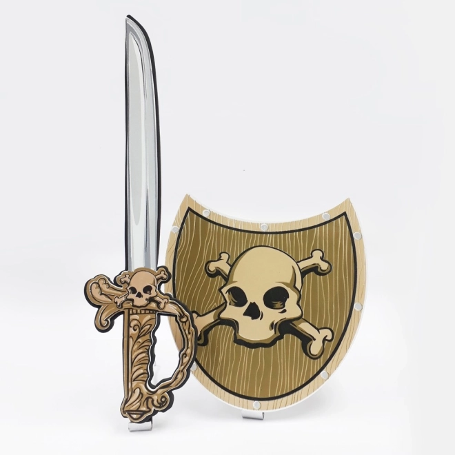 Transformați joaca de zi cu zi într-o aventură pirat. Setul include o sabie ușoară din spumă și un scut cu motiv de pirat, concepute pentru a fi blânde și sigure pentru mâinile copiilor. Se potrivește perfect ca accesoriu pentru costume la carnaval, petreceri sau evenimente tematice.