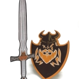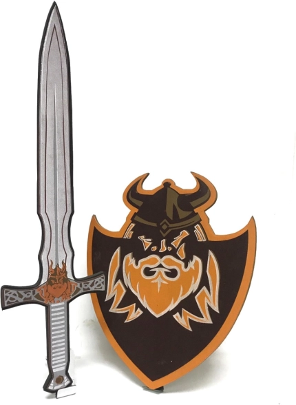 Acest set pentru copii cu motiv viking îmbină jocul creativ și siguranța. Sabia și scutul din spumă sunt ușoare, plăcute la ținut în mână și reduc riscul de accidentare în jocurile cu prietenii sau frații. Se potrivește grozav pentru măști de carnaval, petreceri sau ședințe foto tematice.