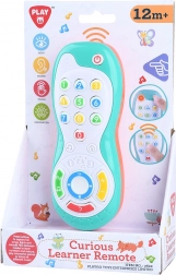 Telecomanda TV pentru copii Playgo, în dimensiune compactă de 14,5 cm, imită o telecomandă reală și susține curiozitatea naturală a copiilor. Datorită sunetelor, cântecelor și cuvintelor în engleză, oferă distracție variată și contribuie în același timp la învățarea timpurie.