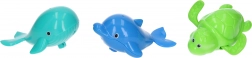 Transformă baia într-un joc distractiv cu animăluțele de baie cu mecanism de înfășurare de 10 cm. Drăgălașa rață, broască țestoasă și delfin se mișcă vesel în apă după înfășurare, au forme netede și rotunjite, execuție sigură și culori vii pe care copiii le adoră. Minunate pentru dezvoltarea motricității fine și a percepției senzoriale în rutina zilnică de baie.