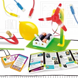 Setul este potrivit pentru descoperiri acasă și ca material complementar la orele de științe. Datorită instrucțiunilor clare, copiii vor experimenta cum funcționează circuitele electrice și cum se produce electricitatea statică.