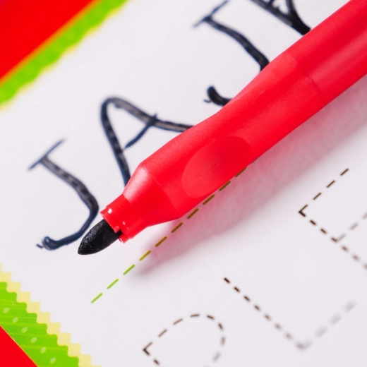 Pachetul conține 32 de tabele pe care se poate scrie și desena cu ajutorul pixului ergonomic unic inclus în set.