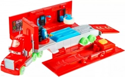 Pornește imaginația cu camionul din filmul Mașini, care strălucește în întuneric și se transformă într-un centru de service! Acest transportor și set de joacă 2‑în‑1 oferă efecte luminoase, posibilitatea de a transporta mașinuțe și, după deschidere, o zonă de service cu Guido pentru o verificare rapidă a anvelopelor. Ideal pentru micii piloți care adoră acțiunea și jocul creativ.
