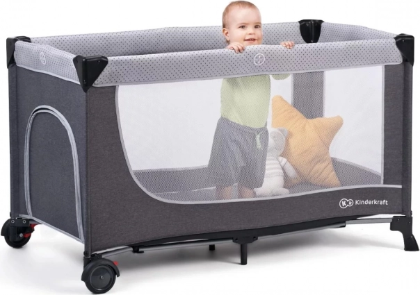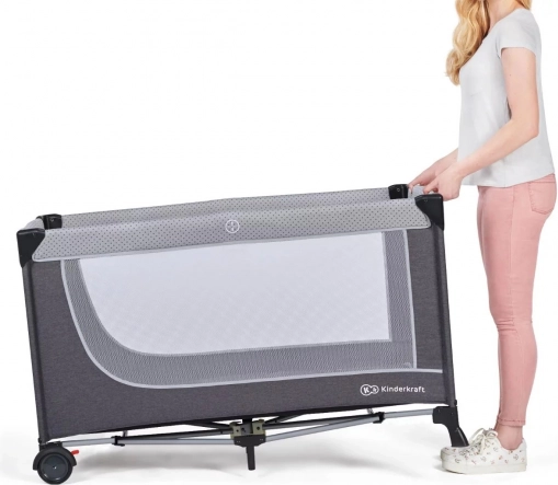 Pătuțul de călătorie LEODY are un mecanism de pliere și deschidere rapidă. Vă economisește timp chiar și atunci când împachetați în grabă – sunt de ajuns câteva mișcări și pătuțul este gata de plecare! - Laturi din plasă