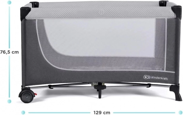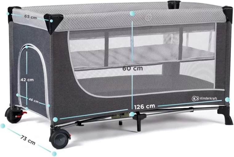 După pliere, pătuțul are dimensiuni reduse (76 x 20 x 20 cm), astfel încât încape UȘOR în portbagajul mașinii. Pătuțul include o geantă practică pentru transport.