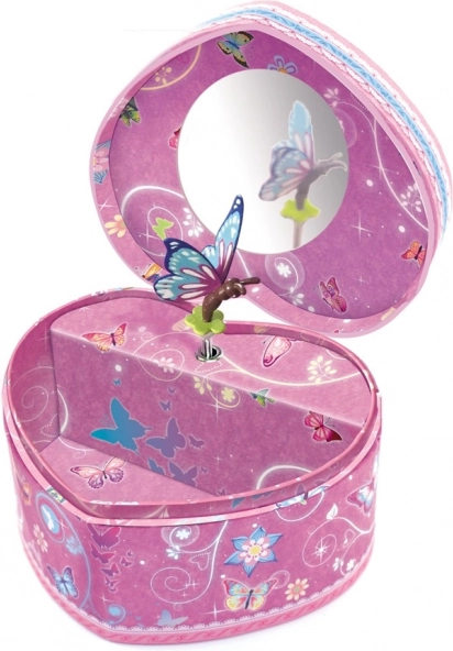 Cutiuță muzicală pentru bijuterii în formă de inimă cu fluturi