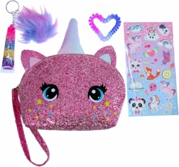 Set de machiaj minunat ideal pentru copii! Include abțibilduri, luciu de buze și o geantă de cosmetice. Distracția este garantată.