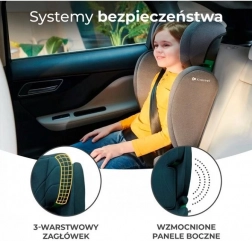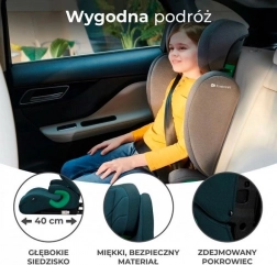 Scaunul este lat și confortabil, fabricat din materiale moi de înaltă calitate. Copilul se va simți confortabil atât pe călătorii scurte, cât și pe cele lungi. Husa este ușor de îndepărtat și poate fi spălată, ceea ce menține scaunul curat pe termen lung.