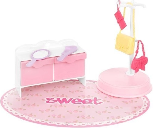 - Lecții de ordine – Setul include umerașe pentru agățarea hainelor. Garderoba păpușilor are de asemenea locuri pentru pantofi, rafturi pentru genți, etc. Fiecare lucru își găsește locul său, astfel încât fetița învață să mențină ordinea.